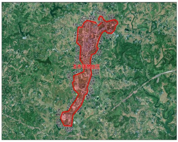 龙市镇场镇:龙市广场、天然气加压站、杨绍禄众地酒厂、吊脸门院子、移民街张印房子、龙市中学围墙、飞龙山庙子、黄家院子、龙市镇政府、老粮站、中石油加油站、生活污水处理厂、天然气充装站、涞滩牌坊、移民房、友军生态园B区、友军生态园A区、曾巧榨菜厂、龙市工业园区、三江米业、工业污水处理厂、郭家院子、龙市中心卫生院、龙市汽车站、中央美地形成的合围区域。