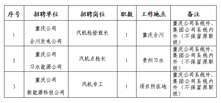 按照员工招聘有关规定,重庆公司所属相关单位面向国家电投集团系统内外公开招聘有关人员,具体事项如下: